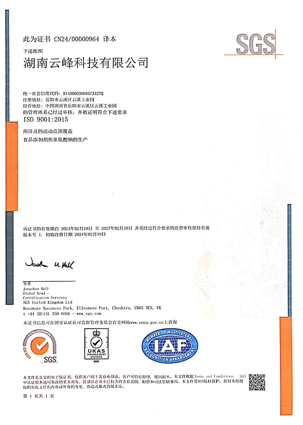 湖南云峰科技有限公司(以下簡稱云峰科技),是由長沙湘岳化工責任有限公司全額投資以生產焦亞硫酸鈉、亞硫酸鈉等亞硫酸鹽為主營業(yè)務的高科技企業(yè),具有六十多年的生產歷史,同時也是焦亞硫酸鈉的國家標準制定參與者。在行業(yè)內具有很大的影響力。現(xiàn)有職工八十余人。具有優(yōu)良的經營管理團隊和成熟的生產技術隊伍。由多位在化學、化工行業(yè)擁有豐富工作經驗的工程師及技術員團隊組建而成,致力于亞硫酸鹽產品的研發(fā)、生產和銷售。2020年公司對生產設備、安環(huán)設施及工業(yè)技術等進行了大規(guī)模的升級改造,使焦亞硫酸鈉和亞硫酸鈉的生產工藝更加先進,技術更成熟,產品質量更優(yōu)良。無論在生產工藝、設備、產品質量、清潔生產、節(jié)能環(huán)保和員工素質方面,均處于行業(yè)領先地位。公司的主導產品“云峰”牌焦亞硫酸鈉,歷史悠久,深受國內外客戶信賴,產品遠銷東南亞、歐美、非洲、南美洲等20多個國家和地區(qū),產品供不應求。